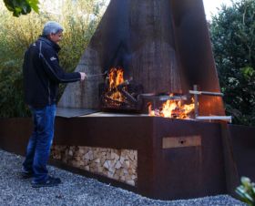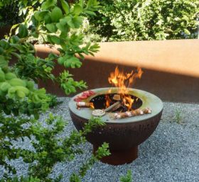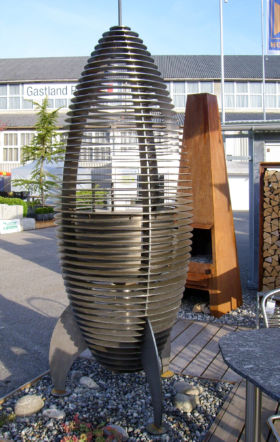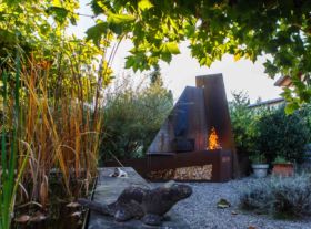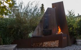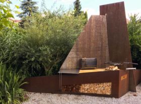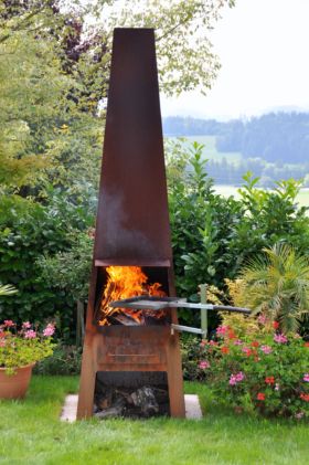 Grillstellen und Feuerobjekte aus massivem Stahl sind Cheminée, Grill und Skulptur in einem.