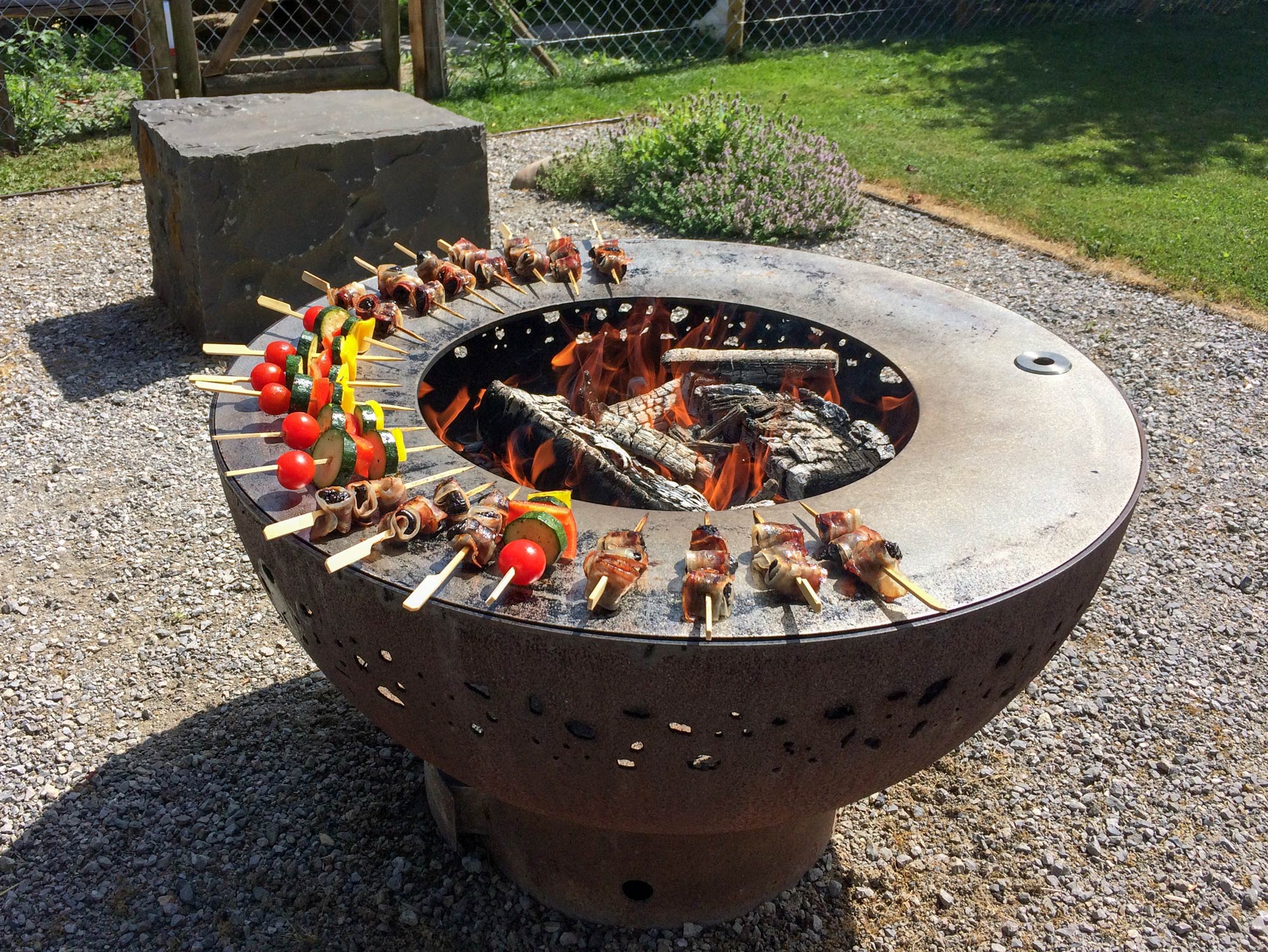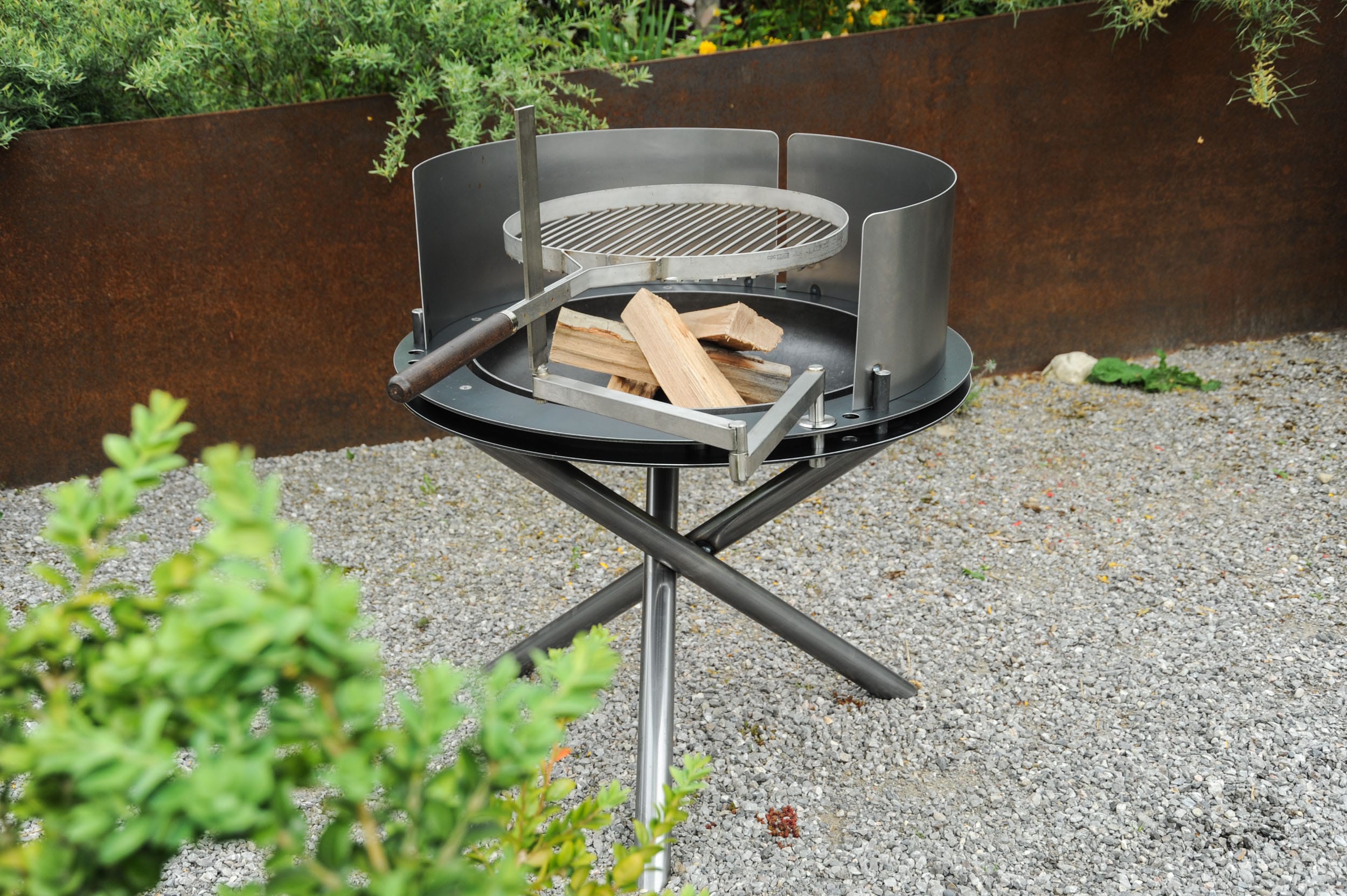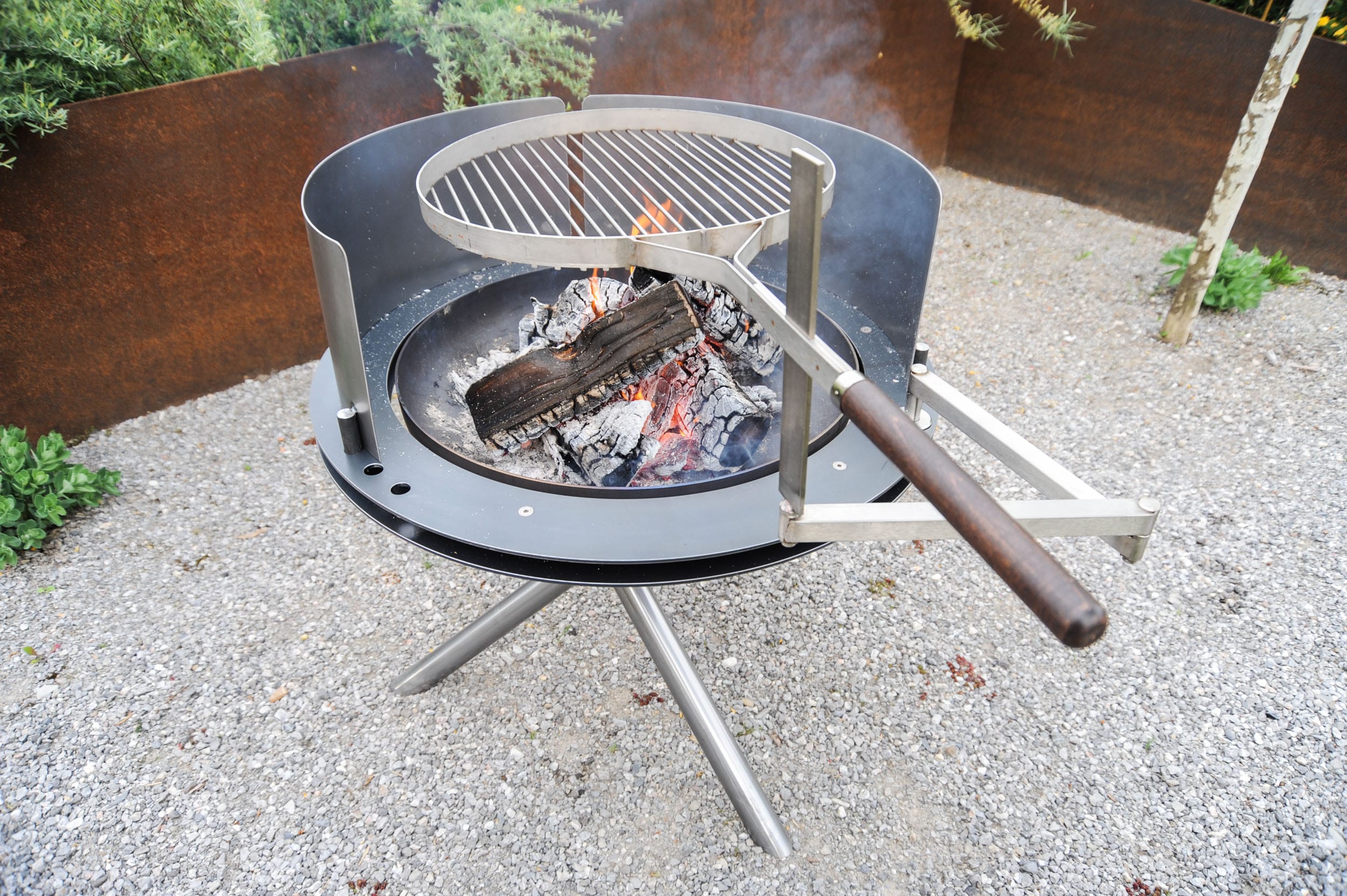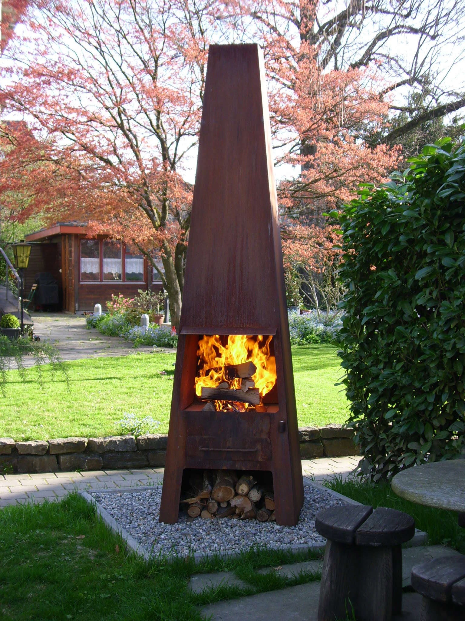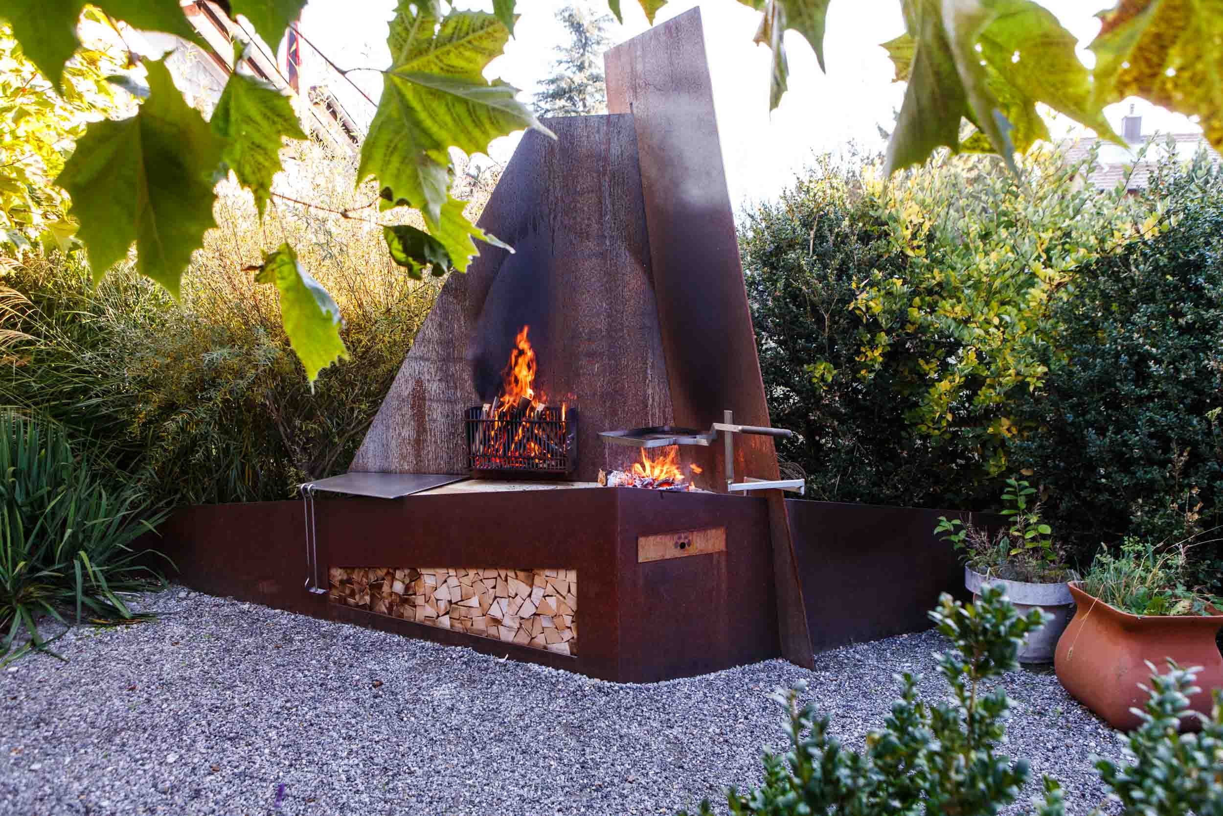 Grillstellen und Feuerobjekte aus massivem Stahl sind Cheminée, Grill und Skulptur in einem.
