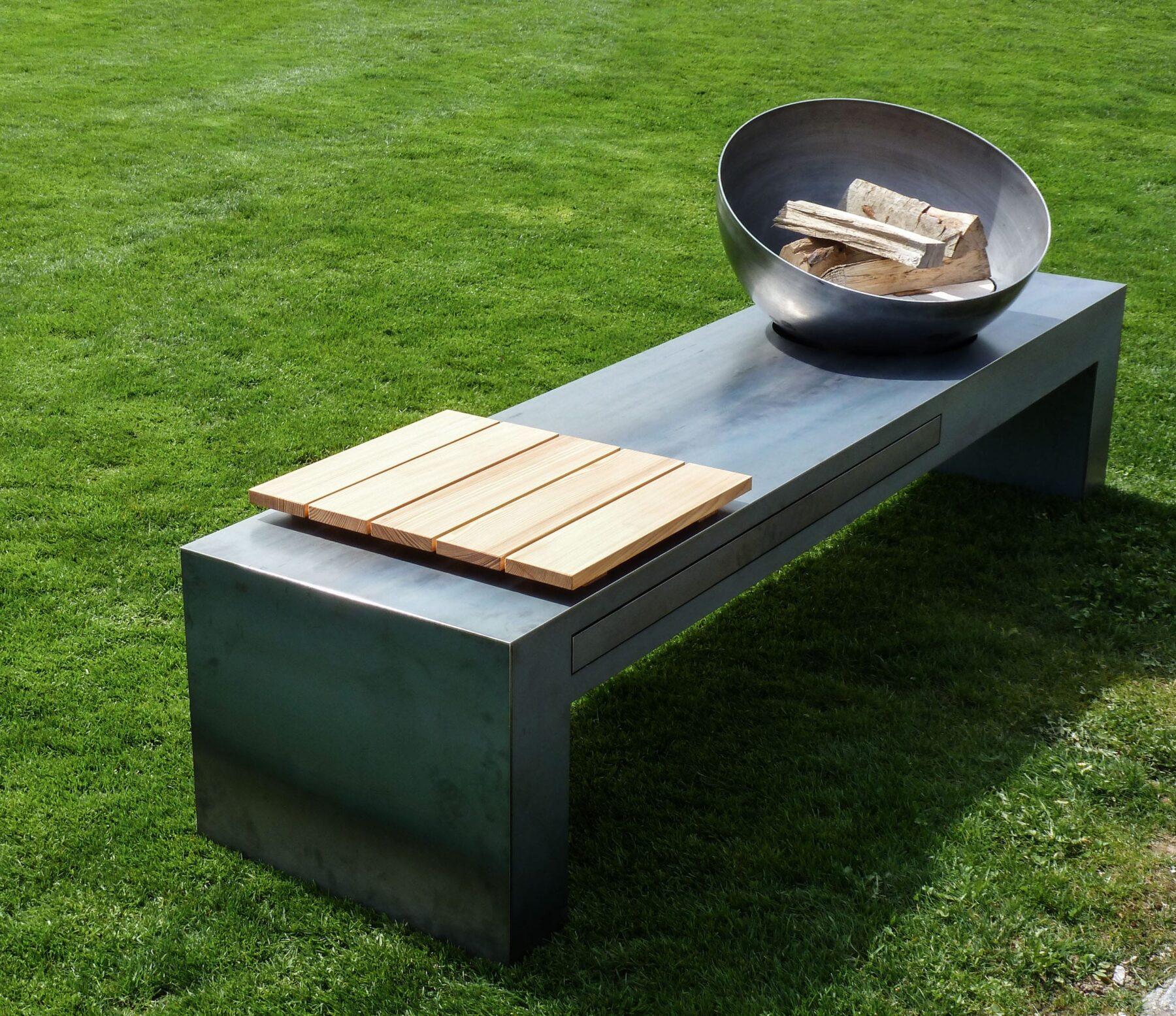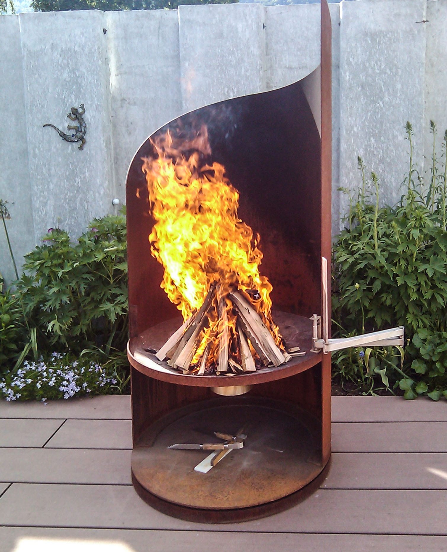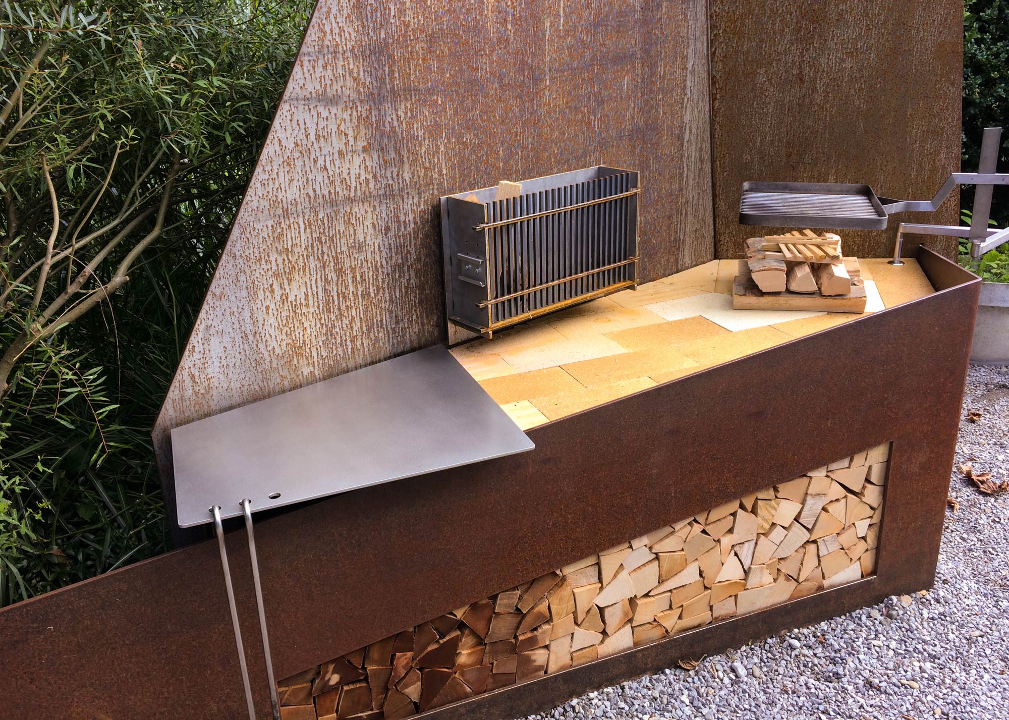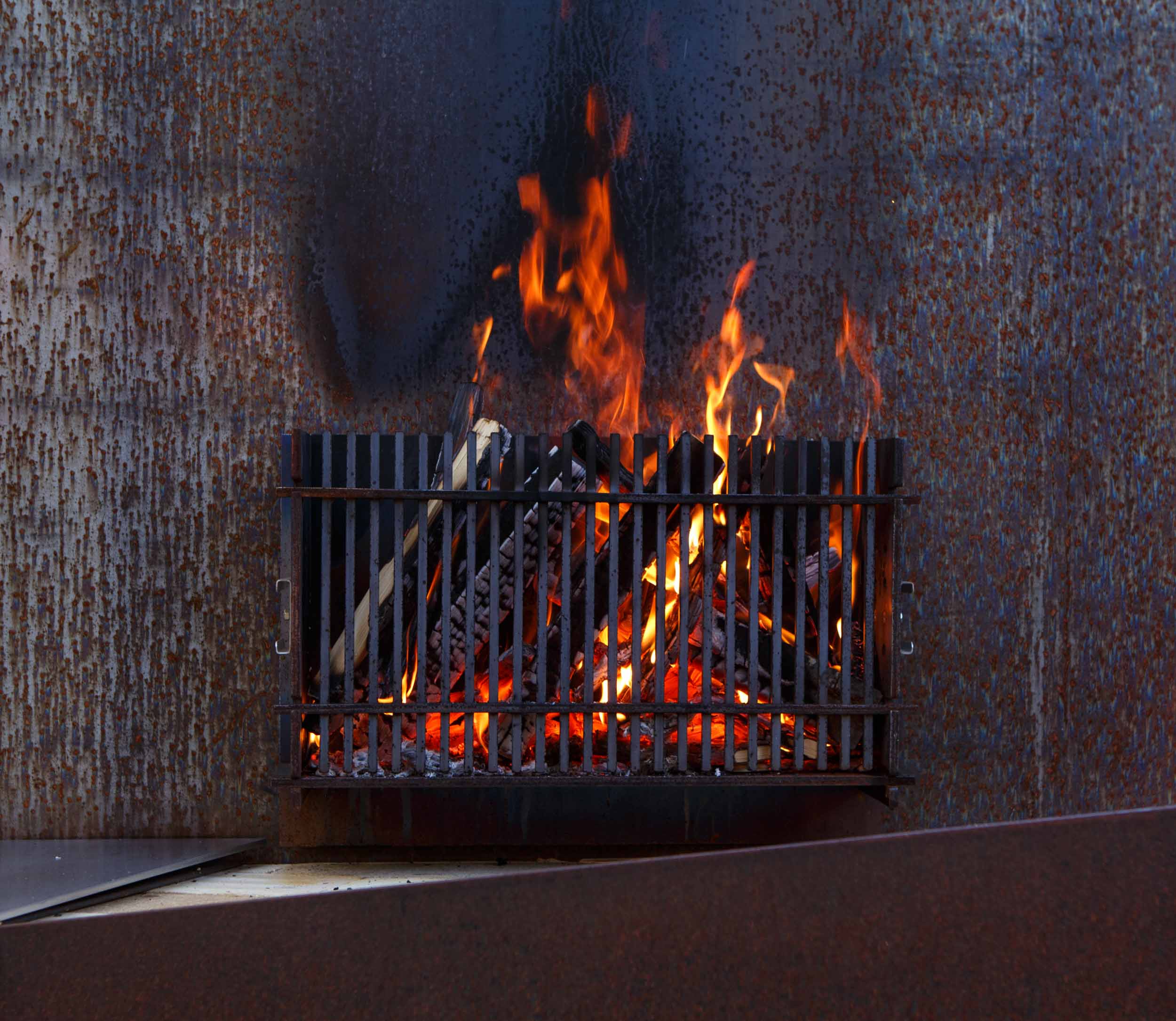 Grillstellen und Feuerobjekte aus massivem Stahl sind Cheminée, Grill und Skulptur in einem.