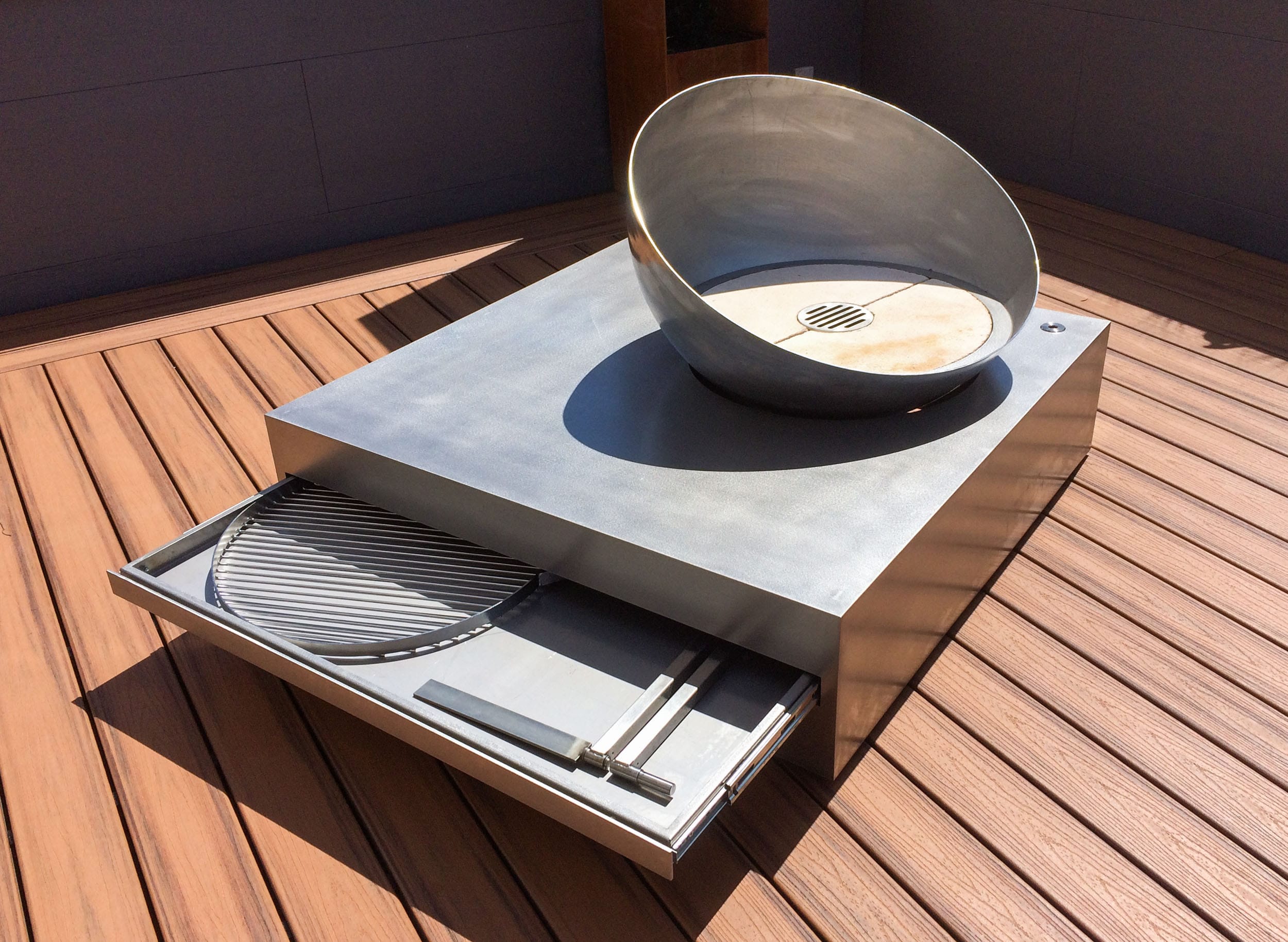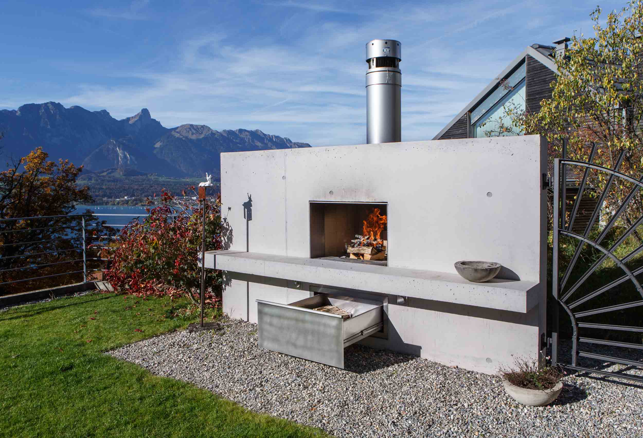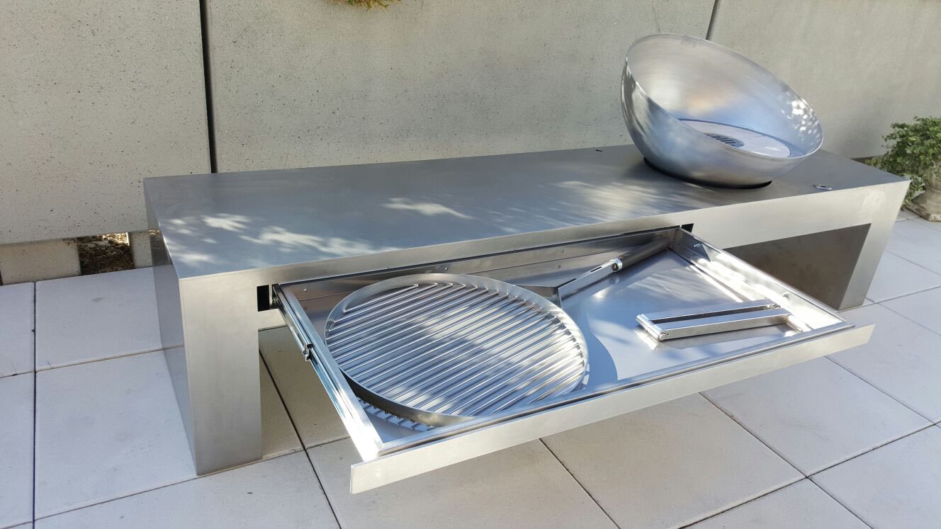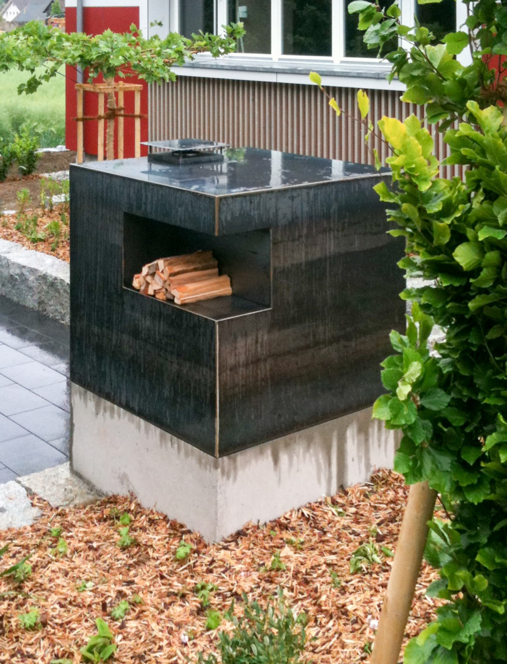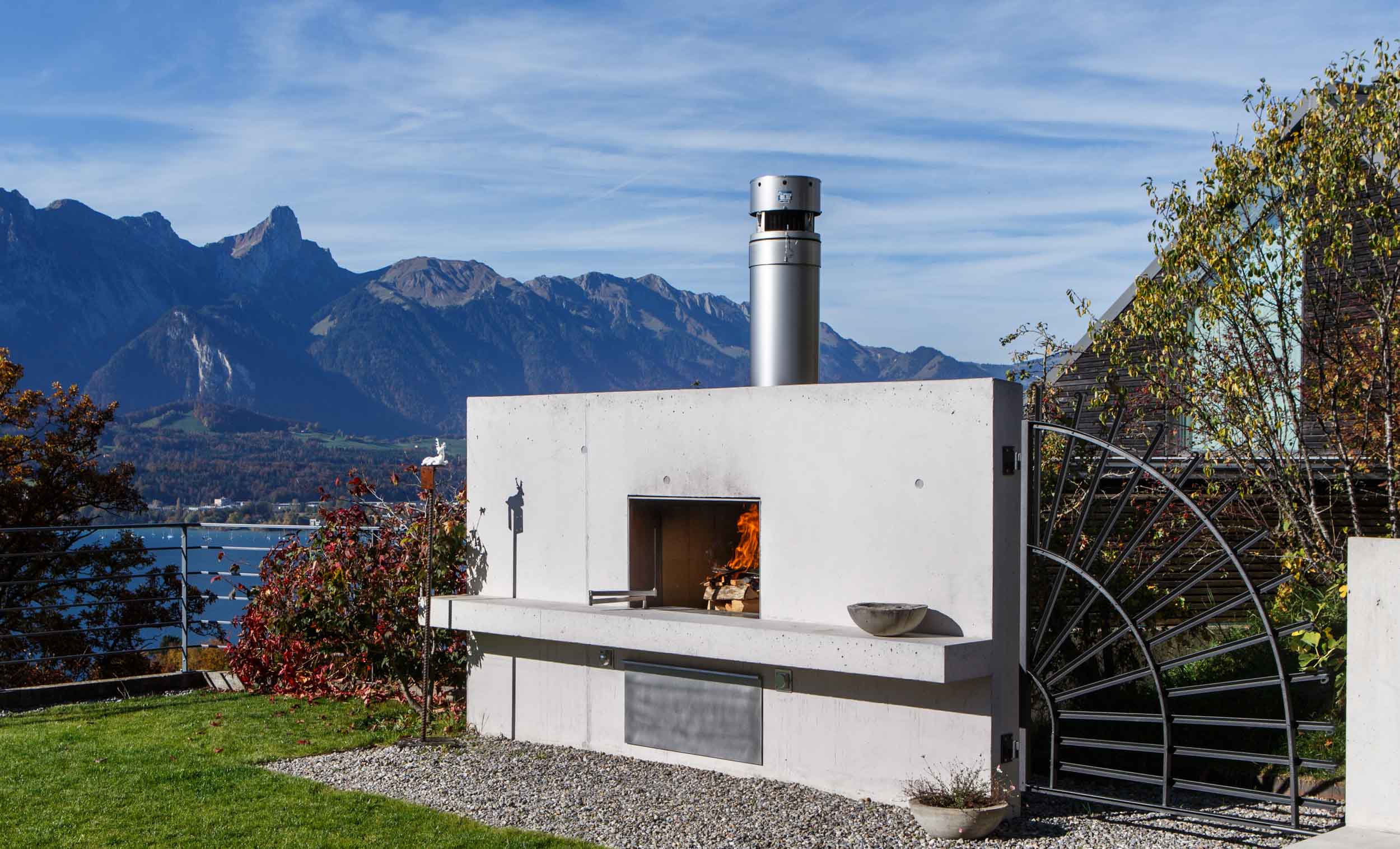 Grillstellen und Feuerobjekte aus massivem Stahl sind Cheminée, Grill und Skulptur in einem.