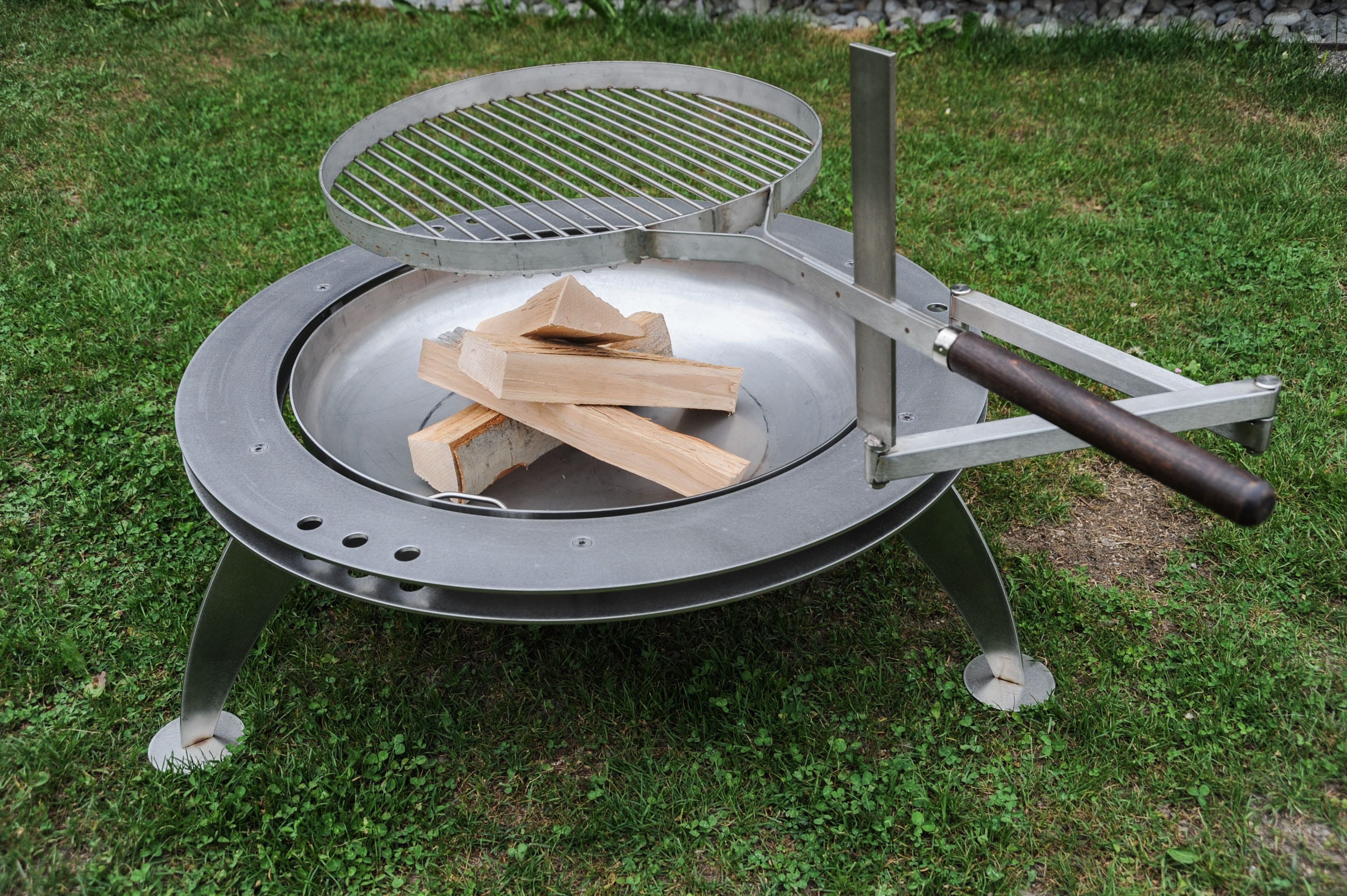 Mit unseren Grill- und Feuerobjekten aus verschiedenen Materialien erschaffen Sie an lauen Sommerabenden oder mitten im Winter eine einzigartige Atmosphäre. Wer den klassischen Grillgenuss sucht, aber von den handelsüblichen Modellen genug hat, ist bei uns an der richtigen Adresse. Bei der metall + handwerk ag finden Sie kreative Objekte, die das Herz eines jeden Grillmeisters höher schlagen lassen. Mit dem durchdachten Zubehör garantieren wir ein tolles Koch- und Grillvergnügen der besonderen Art. Durch das Doppelarm-System lassen sich Grillrost, Lamellengrill, Bratspiess oder auch Bratenkorb mit Saucenschale mühelos montieren. Weiteres Zubehör wie Gusstopf, Raclette-Halterung, Rösti- oder Maronipfanne, alles findet seinen Halt am Schwenkarm. Wem dies nicht genug ist: Das Fondue-Set und die WOK-Pfanne runden das Angebot ab. Gerne fertigen wir mit Kompetenz und Leidenschaft auch Ihr Wunsch-Modell an.