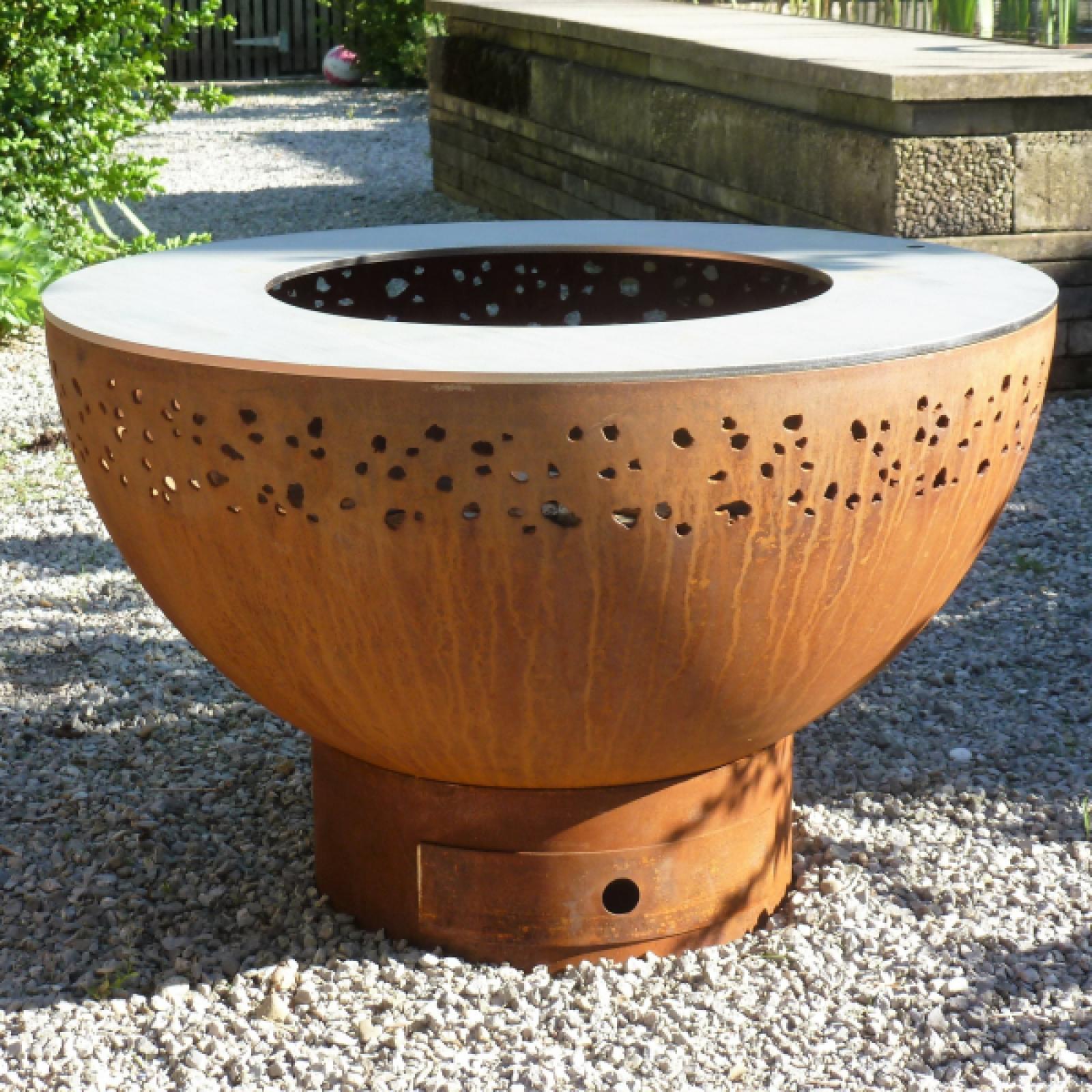 Kompakt im Format, gross in Funktion – die Feuerschale «01» mit Ø 800 mm ist ein wahres Multitalent für stilvolle Outdoor-Küche und gesellige Abende am Feuer.