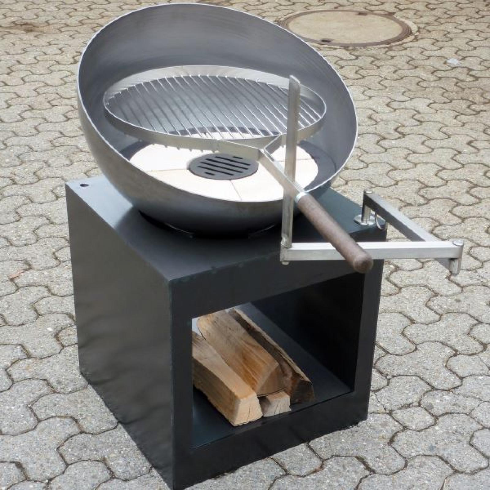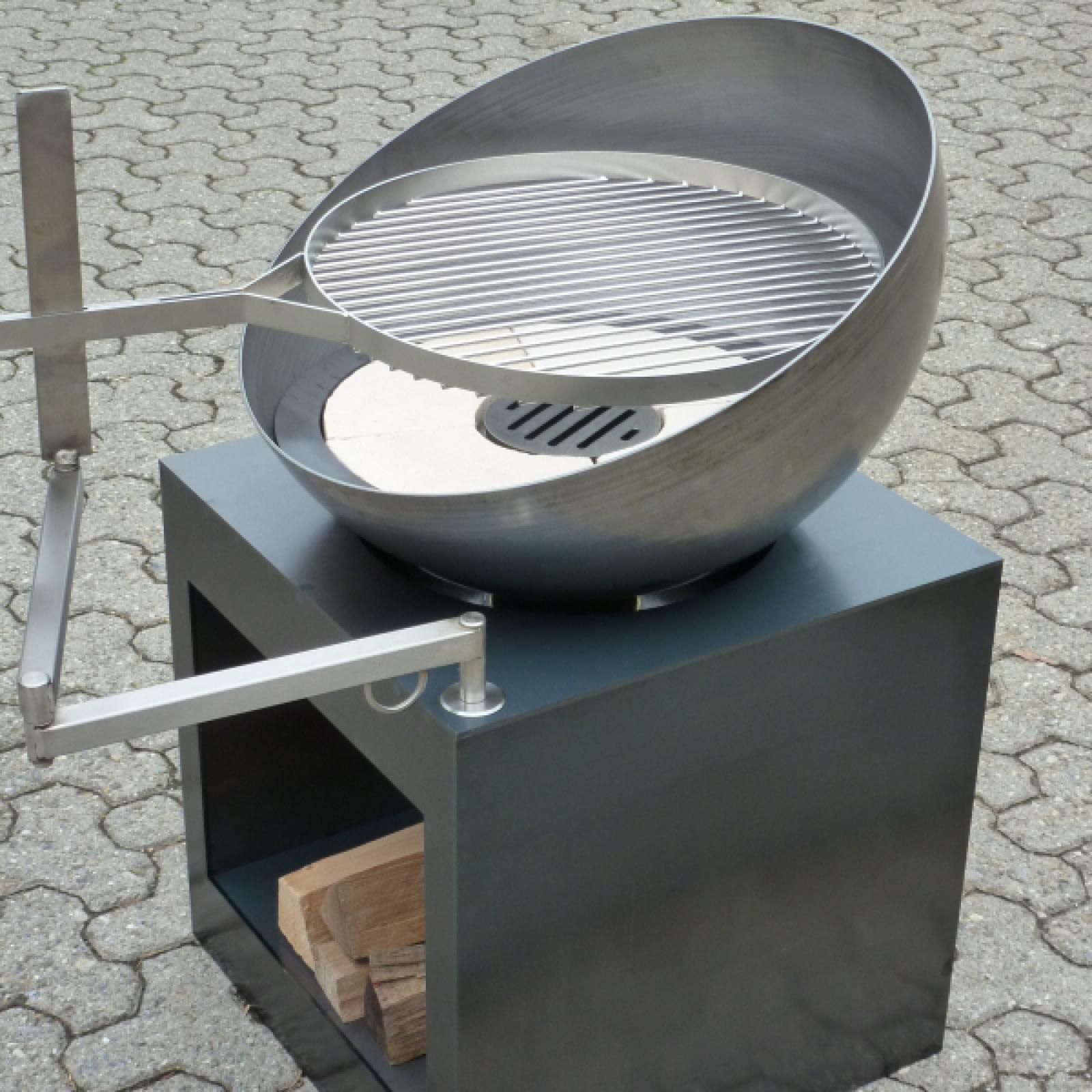 Dank der um 360° drehbaren Feuerschale ist eine bequeme Nutzung aus jeder Richtung möglich. Das integrierte Holzfach sorgt für praktischen Stauraum direkt unter dem Feuer und macht «Robi 2» zu einem funktionalen Outdoor-Möbel mit starker Ausstrahlung.