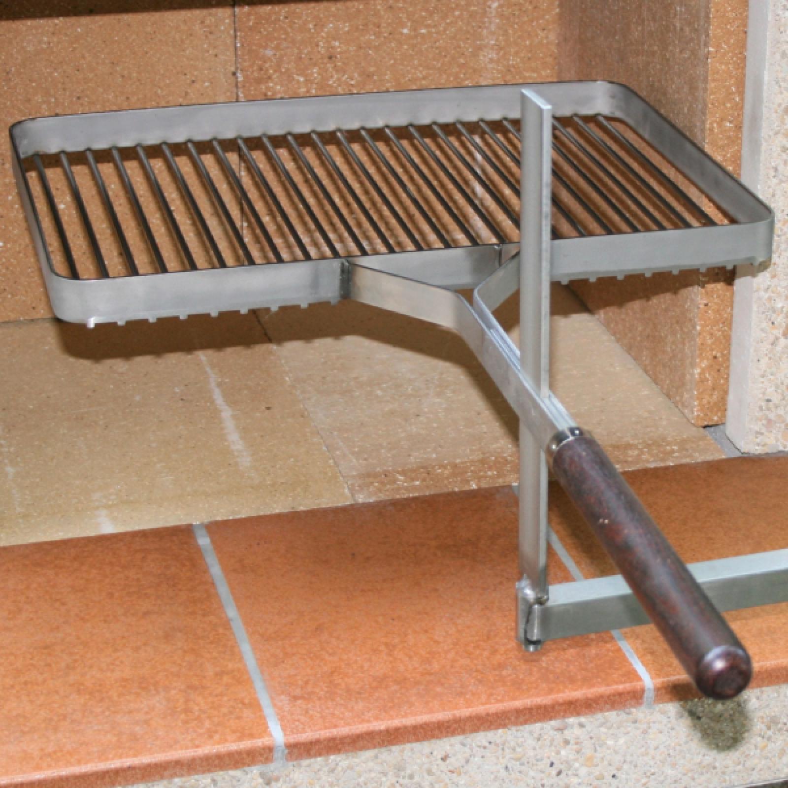 Grillrost Inox mit Arm und Holzgriff