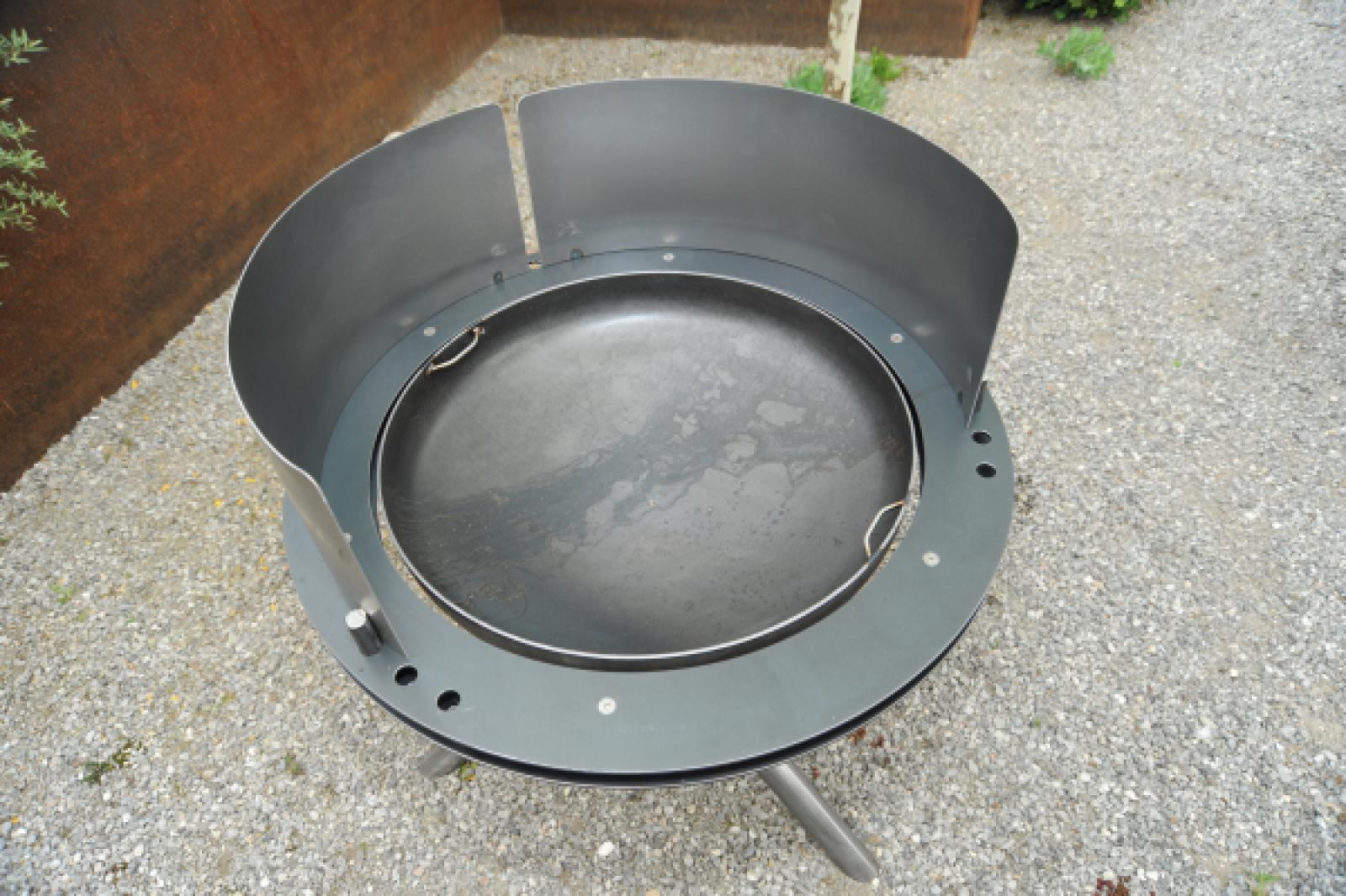 Effektiver Schutz gegen Wind und Funkenflug – stabil montierbar dank doppelter Umrandung der Schale.