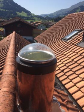 Sunatube ist eine revolutionäre Form, natürliches Sonnenlicht von Ihrem Dach oder Ihrer Fassade in die Innenräume weiterzuleiten und dunkle Wohnungen oder gefangene Räume zu erhellen. Eine Acrylkuppel fängt das Tageslicht ein und leitet es über ein hoch verspiegeltes Lichtrohr mit 98% Gesamtwirkungsgrad ins Innere des Hauses. Die Streulinse verteilt das Sonnenlicht im Raum, damit die Wohnung in ein gleichmässiges Tageslicht getaucht wird. Für die Umsetzung in Ihrem Gebäude beraten wir Sie gern.